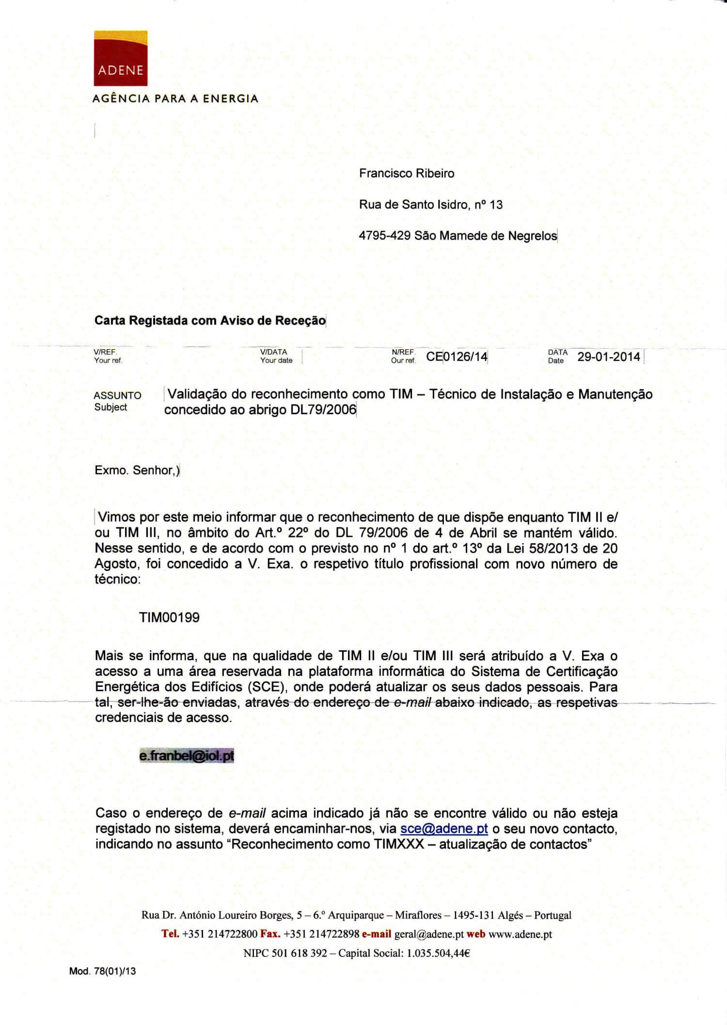Certificado de TIM II: Técnico de Instalação e Manutenção de Sistemas de Climatização com P<100 kW (Renovação)